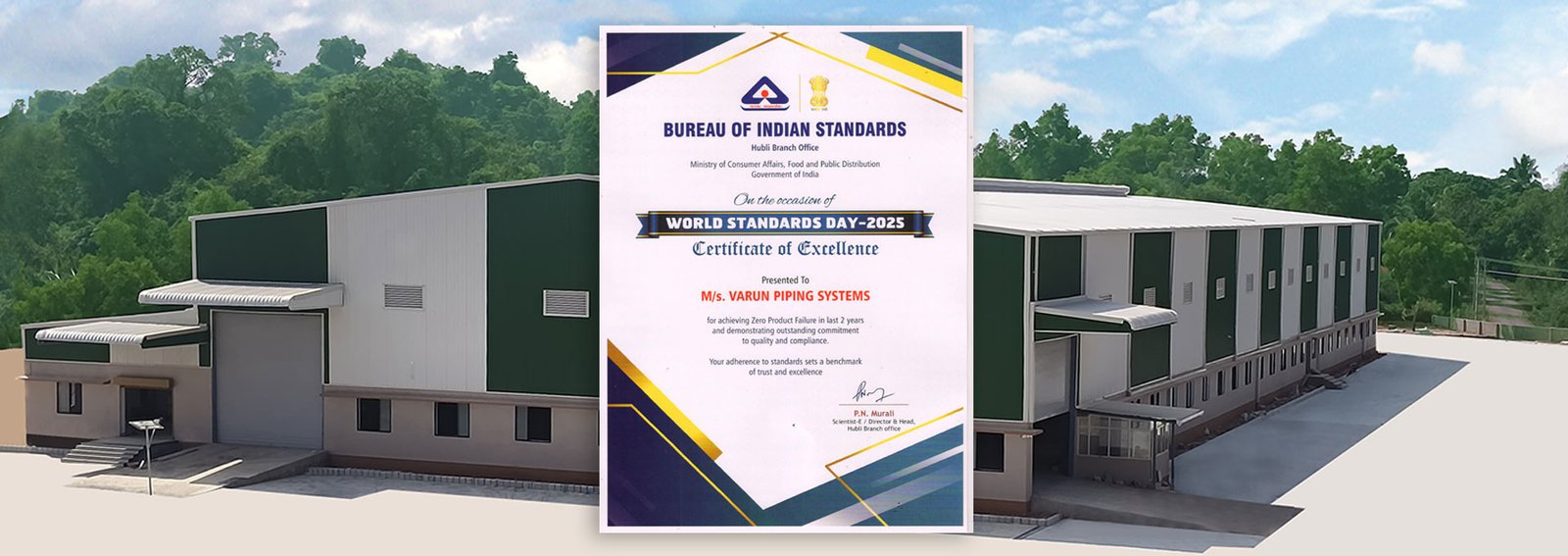 Varun Piping Systems has been awarded the prestigious Certificate of Excellence by BIS Hubli in recognition of our achievement of Zero Product Failure over the past two years